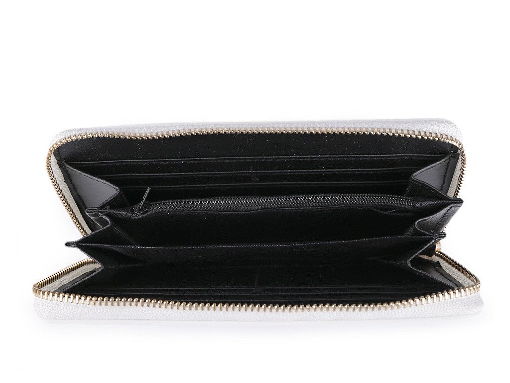 Dámska peňaženka so psíkmi a mačičkami uschová vaše mince, bankovky a rôzne drobnosti. Je dostatočne priestranná, pohodlne tak do nej schováte aj svoj mobilný telefón. Peňaženka je uzatvárateľná na zips, vo vnútri sa nachádzajú tri veľké priehradky na bankovky alebo mobilný telefón, a jedna uzatvárateľná na zips, do ktorej schováte mince a rôzne drobnosti. Po stranách peňaženky sa nachádzajú dve podlhovasté vrecká a osem menších priehradiek na doklady a karty. Rozmery: 10 x 19 x 2,5 cm