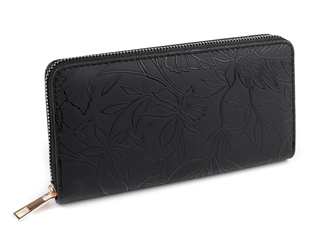 Dámska peňaženka s reliéfnymi 3D kvetmi čierna farba