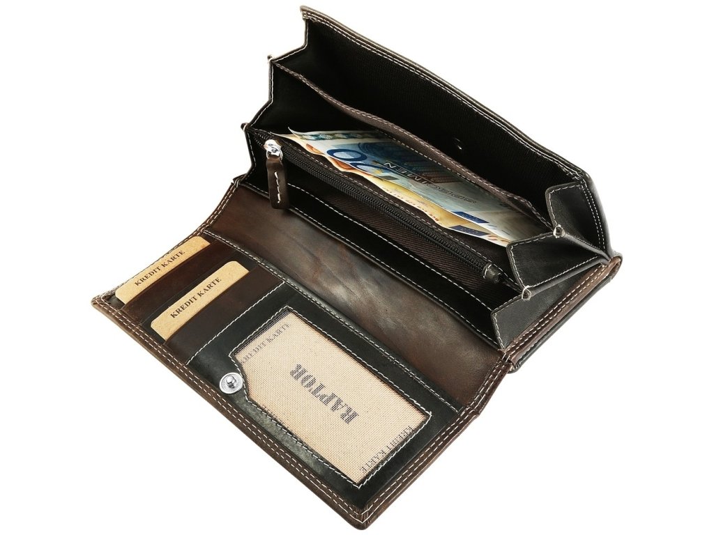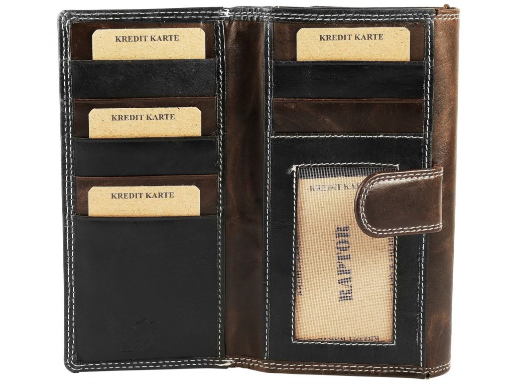 Luxusná dámska peňaženka Raptor vo formáte na výšku čierno-hnedá